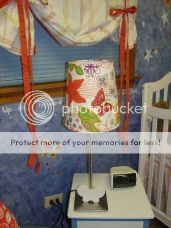 Then found this lamp from Ikea...I couldn't believe it, because it turned out perfect with the curtain I found at Target and the incredible butterfly wall design.